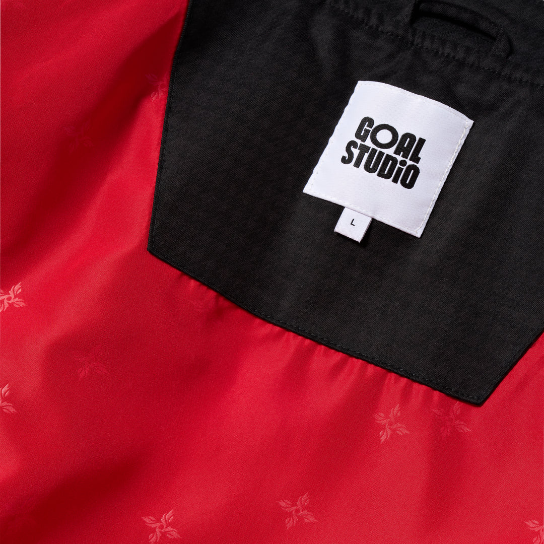 GOALSTUDIO(ゴールスタジオ)が公式キットパートナーとしてともにする、リーグ・オブ・レジェンド eスポーツチーム「T1」の2025シーズン LoL ワールドチャンピオンシップ ユニフォームジャケット。